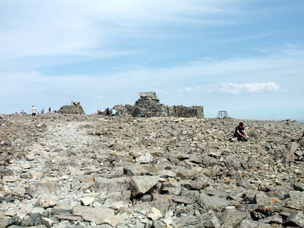 I don't know what I was expecting, certainly not this the Trig Point is on the dais to the left. (Ben Nevis 15th July 2003)